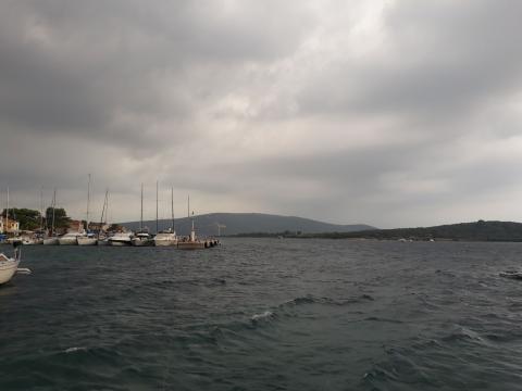 Severin in Darinka si izposodita oba mlada mornarja, nama se ne da na kopno. Tik tak sta bila oblečena in pripravljena za odhod na obalo. Vmes se vračata Dušan in Milena z obhoda po otoku in ju povabiva na kozarček vina. Lepo kramljamo in izmenjujemo jadralske izkušnje že se kuha nova nevihta z juga. Spet ponavljamo procedure predpriprave za nevihto oz. dež. Vse je potrebno pospraviti, zategniti vrvi, zapreti okna, uf tega je kar nekaj. Otoška posadka z mladima mornarjema se ekspresno vrne na barko, prihaja nekaj črnega z zahoda.
