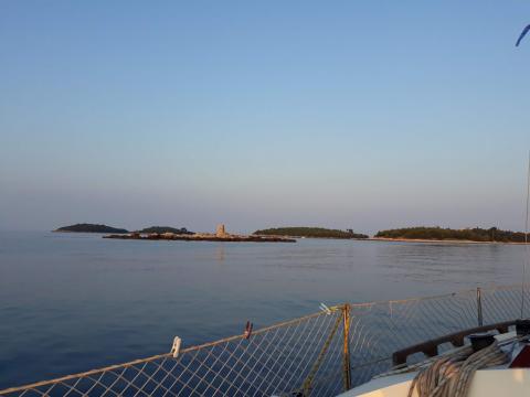 Dvignem sidro in to na roke, 8 mm verigo ter 16 kg težko sidro. Vsi še trdno spijo, še do 04:30 zjutraj so neki angleži razgrajali na obali. Pihal je burin in vse sem slišal v svojo spalnico. Tipi topi in že smo bili na poti najprej do Umaga. Obvezen postanek ob odjavi iz lepe njihove.