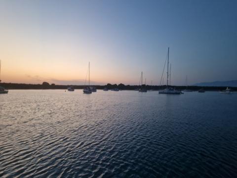 Sledi razvijanje sence po celotni barki, danes bo vroče! Posadka se že ohlaja v prijetni vodi in moški del posadke že raziskuje morsko dno. Tudi sam se nato podam v raziskovanje. Prvič v naravi vidim morskega biča ter nekaj rib (Frater), ki okrog njega iščejo ostanke hrane.