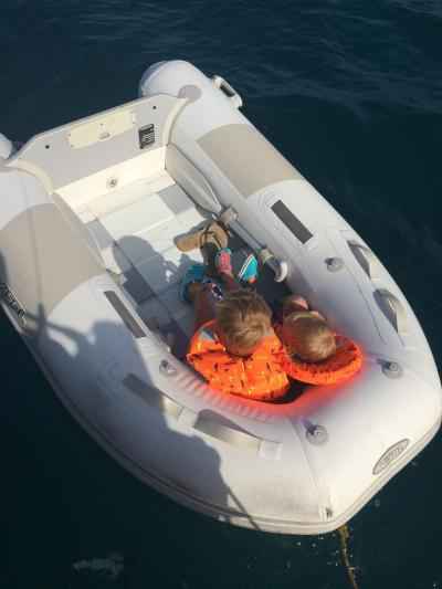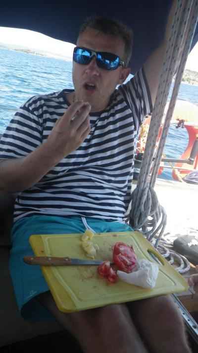 Vetra je bilo zjutraj le za vzorec. Na boji so nas napadle ose in obvezno smo se odravili na otok, kjer smo si privoščili pizzo in sladoled. Zvečer nas je počakal inkasant in za najcenejši privez smo plačli 105 kn. Iz Silbe smo se podali na pot proti Lošinju. Jernej nas je povabil v Nerezine, kjer nas čaka roštiljada. V zalivu artaturi smo se zasidrali, kjer sidro drži bolj slabo. Jernej nas je prišel iskati ter po odličnem kosilu, sva napolnila še kantice z bencinom. Bencina smo sedaj imeli dovolj do Kopra. Ostali smo še en dan in se kopali ter odpočili.