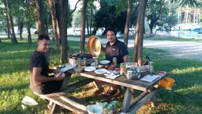 Sobota je bila delovna, tesnenje palube, nakupovanje in predpriprava za večerni obisk Matjaža in Igorja. V marini Nautec, sva obiskala stare prijatelje ter popili pivo. Zvečer sta se Matjaž in Igor privezala poleg naši dveh bark in že smo imeli novo žurko :)