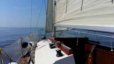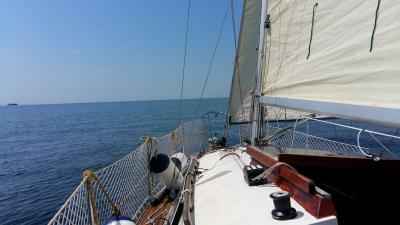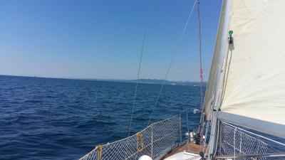 Ponedeljek je prišel Tine in odpravilia sva se na jadranje, žal se nisem počutil najbolje, izgleda da sem od doma prinesel nek nahod. Z Tinetom, vsa jo ucvrla mimo školjčišč in že sva bila na odprtem. Vsa jadra zunaj in veter se je lepo dvigal. Malce malice nekaj kozarčkov rujenga in pet ur je minilo kot za šalo.
