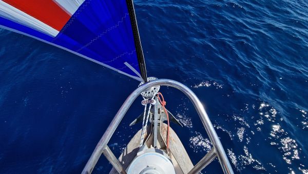 Na sidrišču nas je zbudilo čudno guncanje barke. Valovi so prihajali iz južne smeri, v glavi pa sem imel včerajšnjo napoved vremena, da bo le burinček pihal.