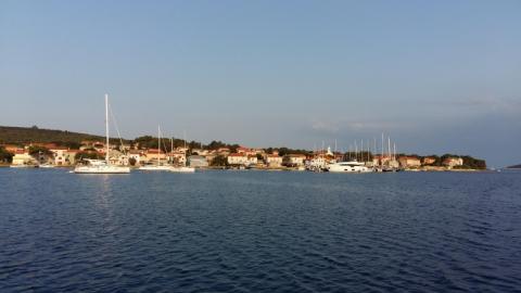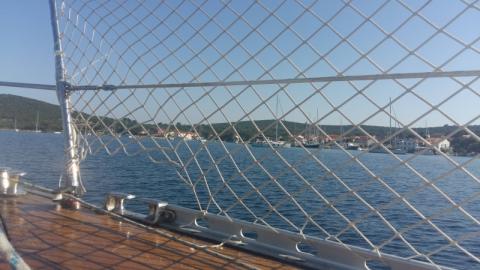Kot vedno se vse lepo nekoč konča in tudi naš veter je upadel in zapel je motorček. V daljavi nas je spremljala jata delfinov, prav lepo jih je bilo gledati, kako se izgrajo in preigravajo.