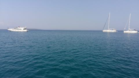 Po dobrih 6 urah jadranja smo se sidrali na otoku Olib v zalivu Slatinica. Boj v zalivu ni, so pa betonski bloki. Zaliv je poln jaht in celo nekaj jadrnic. Spustil sem dovolj verige, da bomo varno zasidrani. Napovedujejo možnost nevihte, no bomo videli kakšna bo noč.