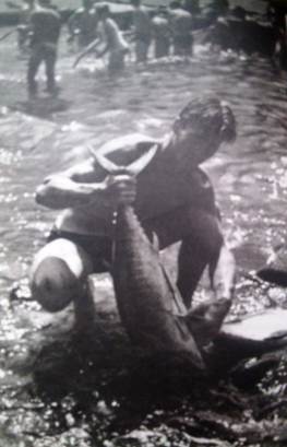 Tunolov na slovenski način ni bil krut s prelivanjem krvi kot drugod, ker so ujeto ribo prijeli za rep in jo položili na obalo.