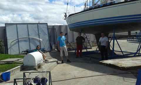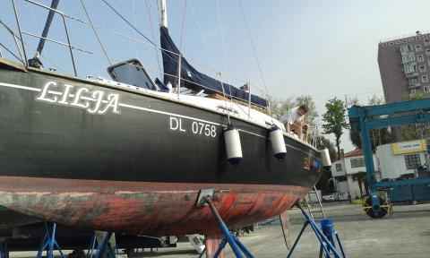 Evo zadeva je urejena :) Med vikendom smo v ekipi (Andrej, Damijan, Uroš) uredili vse potrebno. Čiščenje podvodnega dela, poliranje bokov, brušenje palubnega dela ter lakiranje, servis motorja, kitanje, brušenje, čiščenje. Fantje hvala.