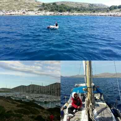 Akcija reševanja sidra se je nadaljevala. Jaz in Peter sva v pomožnem čolnu iskala sidro s pomočjo maske. Po debeli uri smo locirali sidro in ga počasi potegnili na plano. Vmes seveda ni šlo brez kopanja Andreja in Petra.
