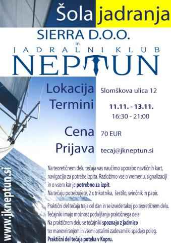 Teoretični del tečaja traja 3 - 4 dni v popoldanskih urah (17:00 - 21:00) v Ljubljani (Slomškova ulica 12). Na tečaju vas naučimo uporabo navtičnih kart, navigacijo za potrebe izpita. Razložimo vse o vremenu, signalizaciji in o vsem kar je potrebno za izpit. Na tečaju potrebujete, 2 x trikotnika, šestilo, svinčnik in papir.